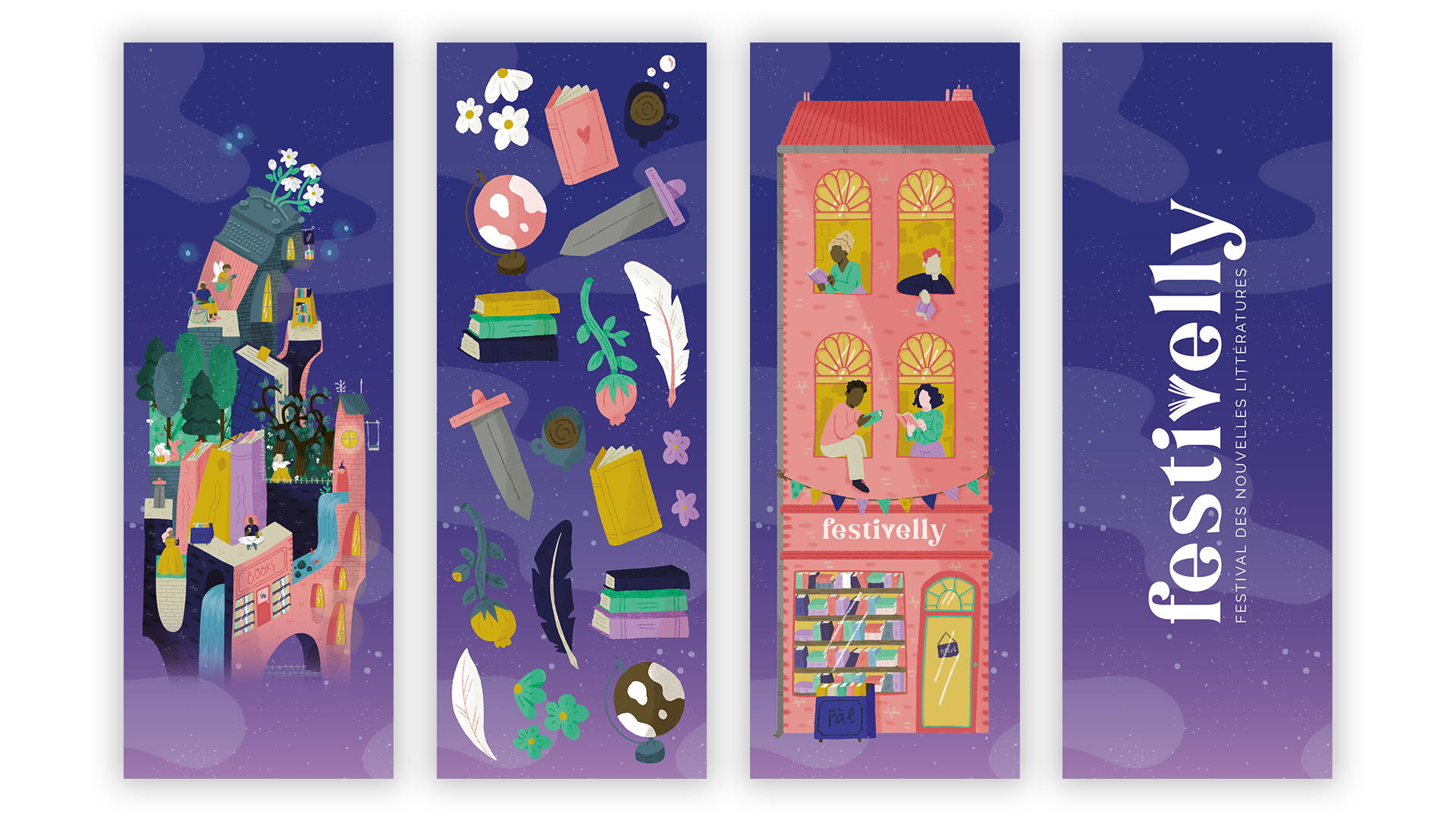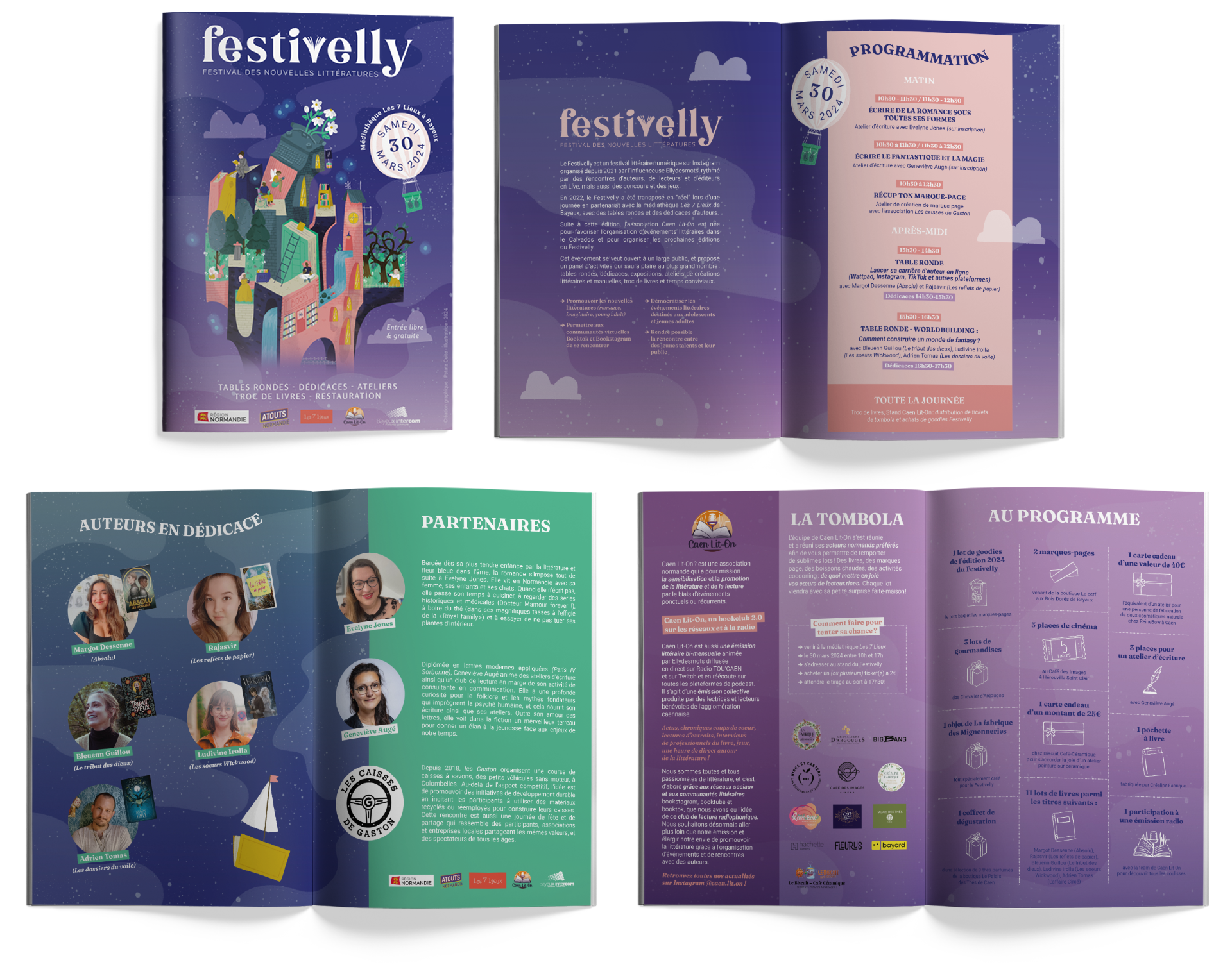 Réalisation de l’ensemble de la direction artistique du festival littéraire le Festivelly organisé par @Ellydesmots.
