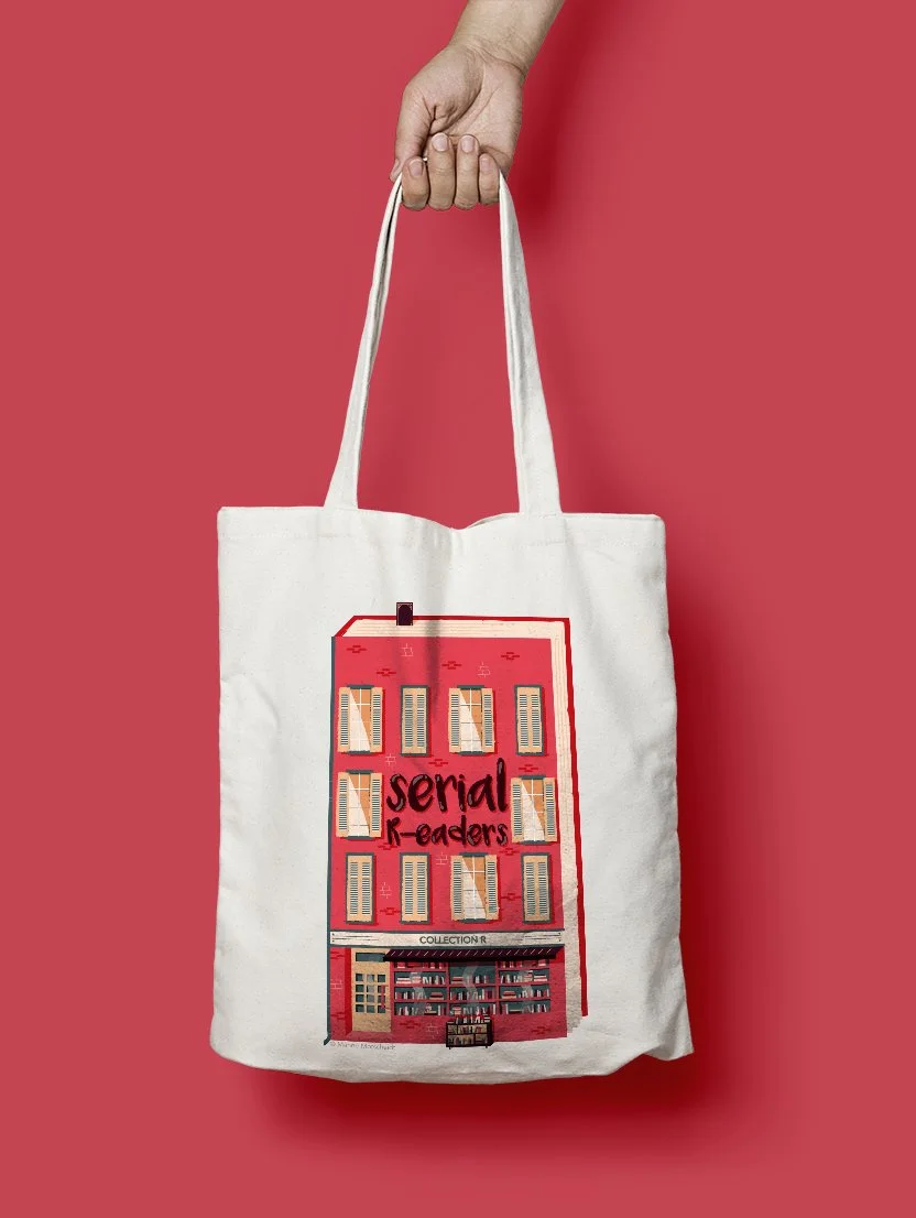 Le premier tote-bag a été offert à la communauté de lecteurs•ices de la Collection R, les Serials R-eaders, en 2018.